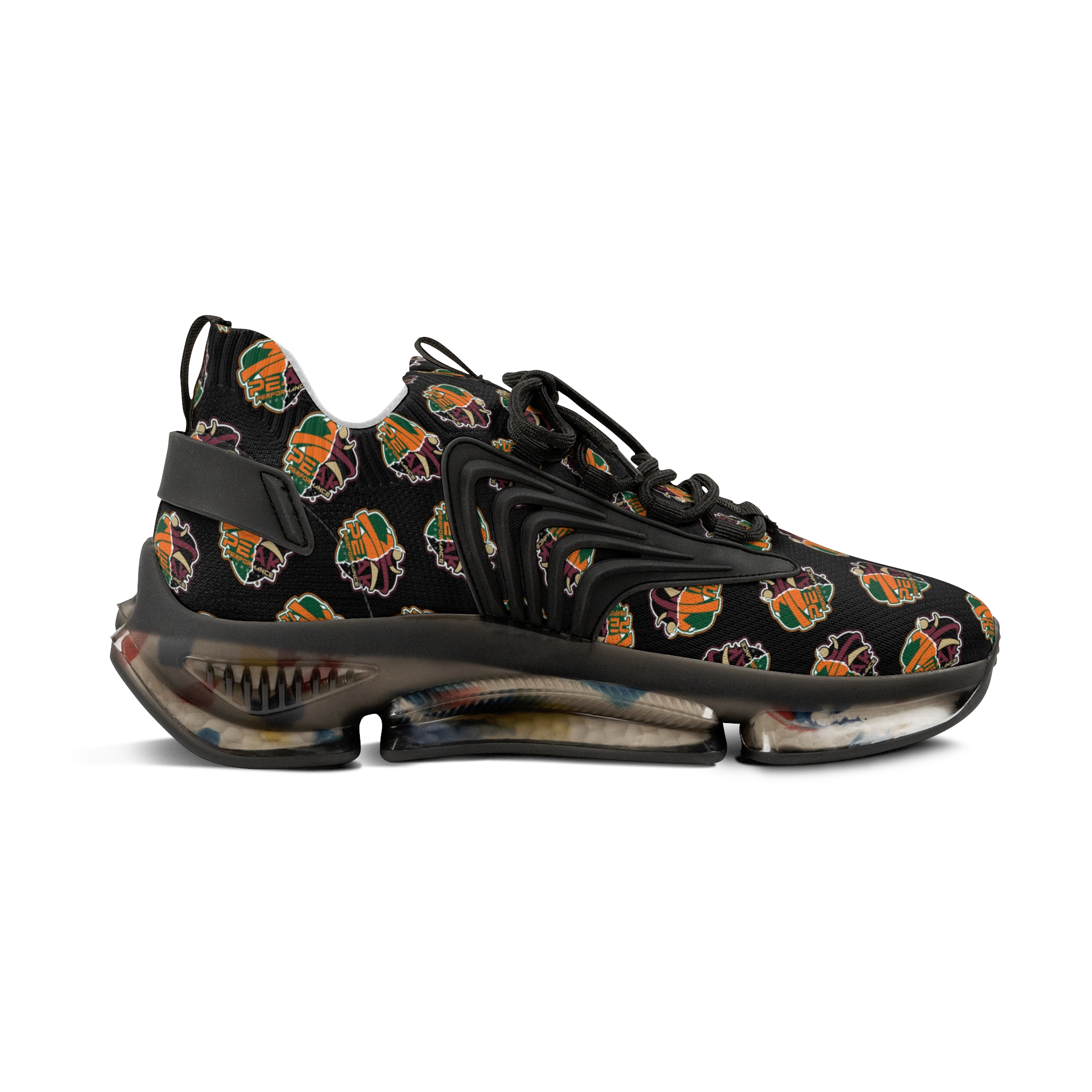 These mesh-knit sneakers bring breathable comfort and bold personality to everyday wear. Lightweight EVA soles and a TPU/EVA shock-absorbing layer give each step responsive cushioning, while the deodorant memory foam insole keeps feet fresh and cool during long days. The all-over printed mesh upper showcases a repeating, colorful emblem on a black canvas, framed by durable KPU decorations that hold up in varied conditions. Lace-up closure and color-matched stitching (black or white options) finish the look with a crisp, tailored edge. Wear them for city strolls, creative commutes, or weekend runs—these sneakers move easily from active moments to casual meetups without missing a beat.
